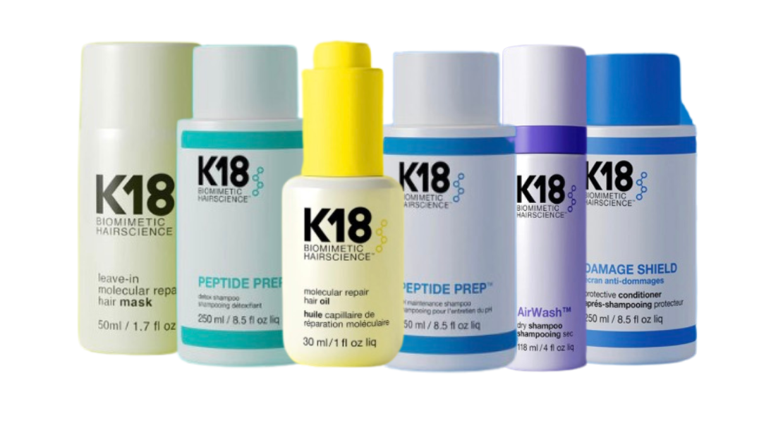 - K18: se destaca por una tecnología patentada de péptido biomimético que permite a su producto estrella, el leave-in mask, actuar como reparador de enlaces que promete en 4 minutos reparar grandes daños con el uso continuo.