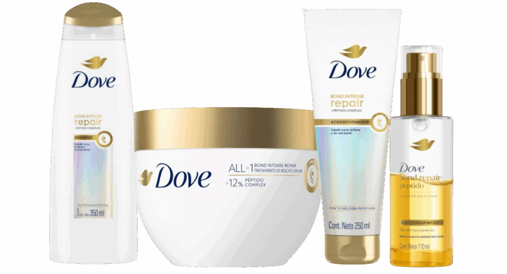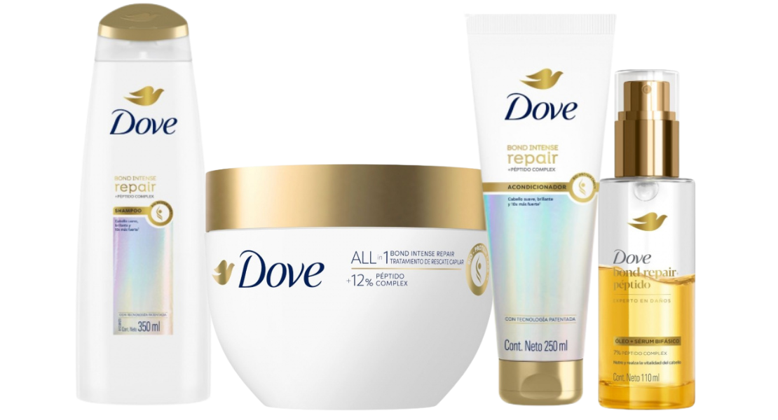 - Dove Bond Therapy: otra línea de precios asequibles para una reparación profunda a partir del uso diario, toda la línea cuenta con tecnología Bio-Protein Care. Precio aproximado línea completa: RD$1,700.