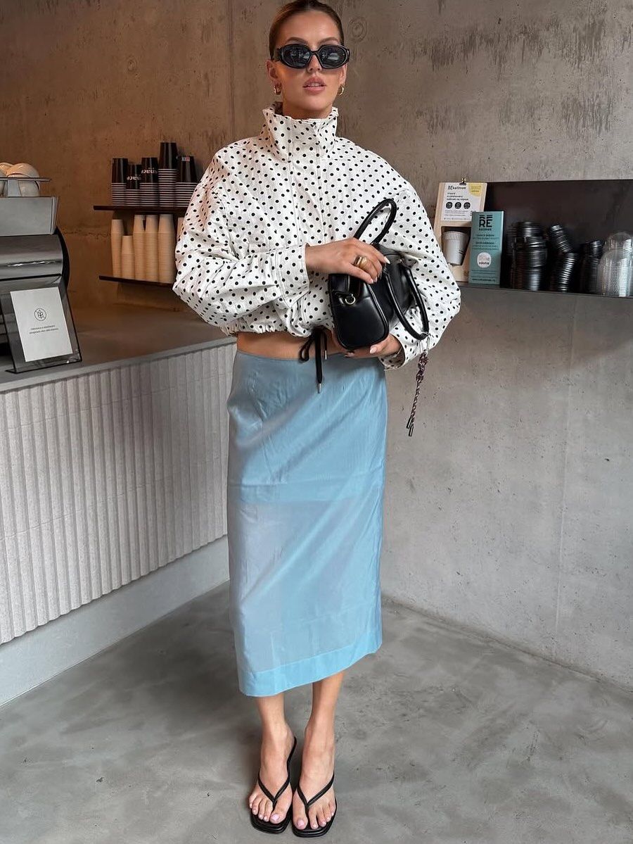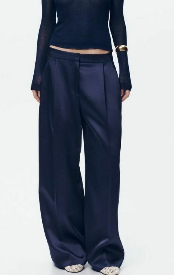 Las prendas en satén se consolidan como las favoritas de la temporada, especialmente con detalles en encaje y estampado. Vestidos y faldas siguen liderando la tendencia, pero ahora también se les suman pantalones rectos y palazzo predominando en color marrón y negro.